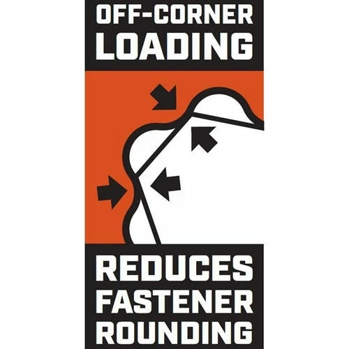 - Off-corner loading technology on the box-end reduces fastener rounding.