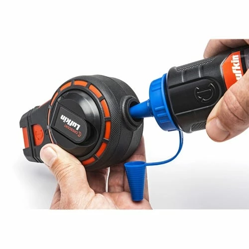 Crescent chalk reels are feature-rich in order to make every pro’s work easier. With a one-way refill valve and a quarter-turn removable top; filling the chalk reel is quick and clean. A one-hand hub lock keeps the reel firmly secured and the end hook slides securely into a storage recess so it won’t catch on other items in your tool bag. With a 6:1 gear ratio; retraction is fast and the compound braided line improves chalk retention for well-defined lines; snap after snap. HardMark Blue chalk is a Crescent Lufkin proprietary marking chalk designed to be a brighter blue for increased line visibility regardless of the light condition or surface.