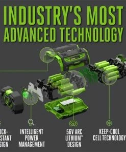 The 12.0Ah ARC Lithium Battery is equipped with an upgraded fuel gauge. The built-in indicator lights lets you see how much run time you have left. With 5 segments wrapping the power button, you can now see how much battery power you have left in 20% increments. The ARC Lithium battery technology is the industry’s most advanced; equipped with patented Keep Cool Cell Technology; which keeps the cells cool and prolongs the life of the battery.