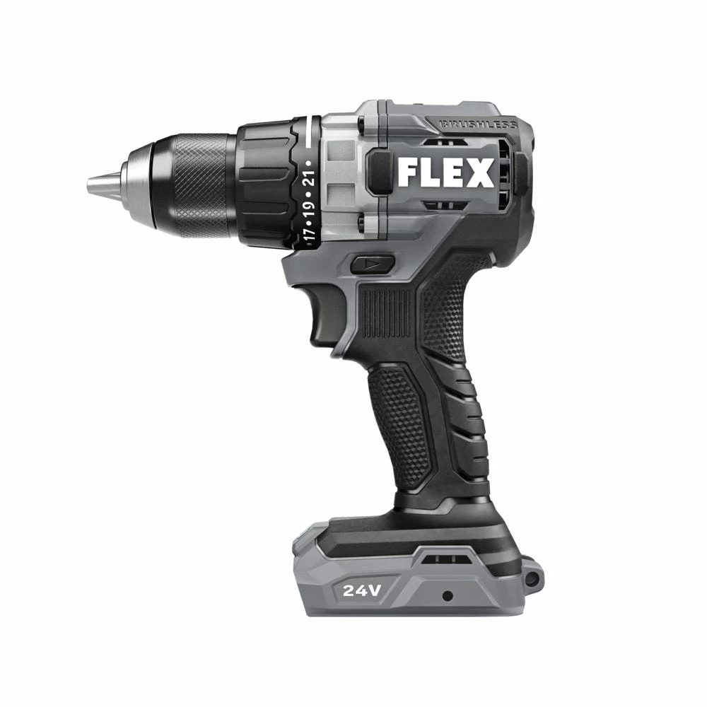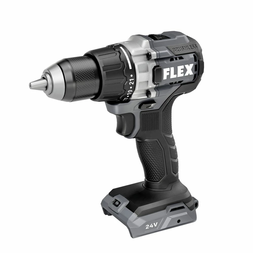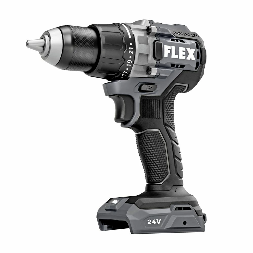 Conquer demanding drilling applications with power, performance, and versatility. This compact FLEX 24V ½” 2-Speed Drill Driver packs 750 in-lbs. of torque with exceptional runtime, so you can power through to what’s next. Tough construction makes for ultimate durability, keeping you equipped for the long haul. Built-in LED lighting assists in dark spaces. This drill driver also delivers the FLEX Advantage of unmatched battery power, runtime, and faster charging.