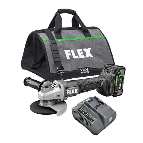 The FLEX 24V Brushless 5″ Variable Speed Angle Grinder with Paddle Switch delivers next-level advantages to the jobsite. Unleash up to 10,000 RPM of unmatched power but also work with confidence. Key features include anti-kickback protection, vibration suppression, one-step guard adjustment, and adjustable touch controls. This angle grinder’s ergonomic design and exceptional runtime keep you going and going. All this is powered by the FLEX Advantage (unmatched 24V battery power, runtime, and charging capabilities) and backed by a 5-year end-to-end warranty.