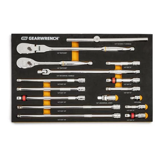 16 Pc. 1/2″ 90-Tooth Ratchet & Drive Tool Set with EVA Foam Tray 86522