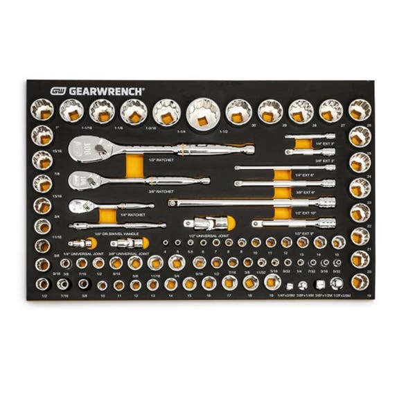 83 Pc. 1/4″, 3/8″, 1/2″ 90-Tooth SAE/Metric Mechanics Tool Set with EVA Foam Tray 86529