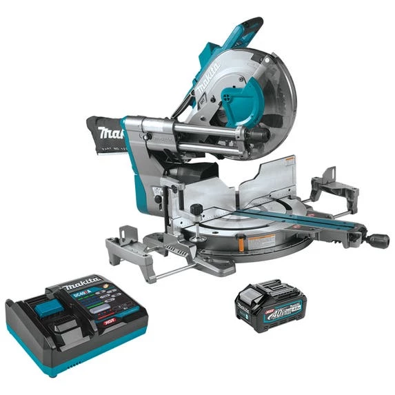 The 40V max XGT Brushless 12” Dual-Bevel Sliding Compound Miter Saw Kit (GSL04M1) delivers faster and smoother cutting. The