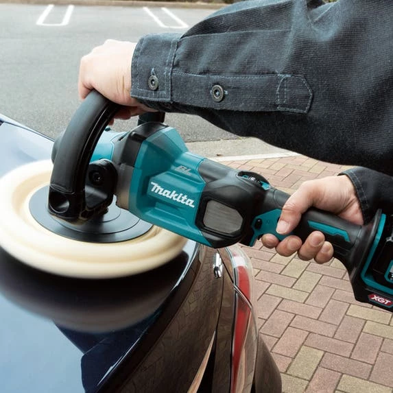 The 40V max XGT Brushless 7″ Polisher provides a cordless solution for a variety of polishing applications where mobility is important. It features a Makita-built brushless motor with a variable speed control trigger and dial offering 600 – 2,200 RPM which enables the user to match the speed to the application. The Polisher includes a soft start feature which suppresses the start-up reaction for smoother start-ups and longer gear life.