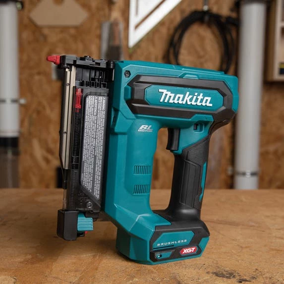 The 40V max XGT Brushless Pin Nailer, 23-Gauge, is a cordless solution that delivers up to 15% faster firing. It has a contact trigger for improved accuracy and precision and a trigger lock. It also features an anti-dry fire mechanism engineered to prevent driving blanks and damage to work surfaces, and a tool-less depth adjustment for precise flush and countersink finish.